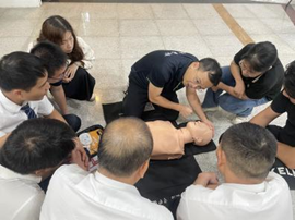 11月6日,医院管理处邀请孙逸仙纪念医院急救团队(含南校园门诊部)为保卫和物业人员开展了专场培训。急诊科李莉主任以其丰富的临床经验和专业知识,为学员们深入浅出地讲解了心肺复苏术的基本原理、操作步骤以及注意事项。通过生动的案例分析和现场演示,让学员们对心肺复苏术有了更加直观和深刻的理解。随后,实操环节由宋凤卿书记主持,急救团队及南校园门诊部的医护骨干担任教官,对学员们进行了手把手的教学指导,包括:判断患者意识、呼叫救援、胸外按压、开放气道、人工呼吸以及AED(自动体外除颤器)的正确使用。培训过程中,教官们特别强调“学会、敢用、会用”,鼓励学员们勇于实践,反复练习,让每位学员熟练掌握心肺复苏和AED使用的基本技能,为校庆期间可能遇到的紧急情况做好了充分的应对准备。