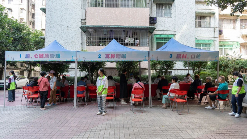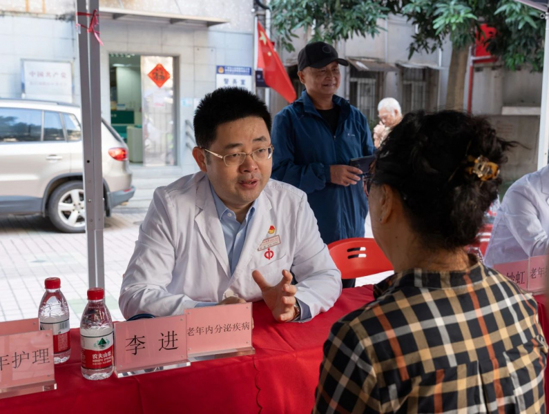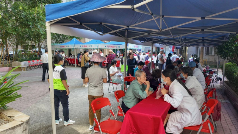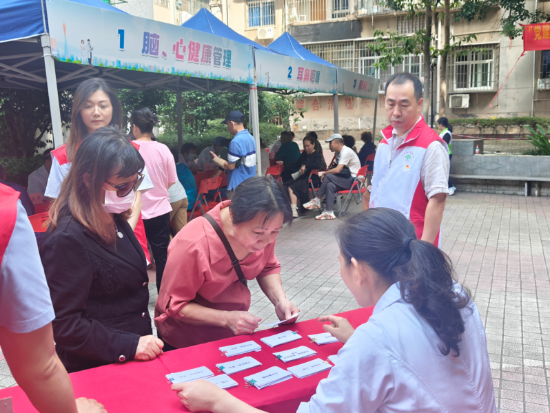 神经内科裴中教授带领其脑健康管理团队为老师们进行阿尔茨海默症早筛,受到居住在竹丝村小区高龄老人们的重视,还有教职工专程带家里的老人来到现场进行筛查。脑健康管理团队对筛查出认知功能异常的居民给予了详细的健康指导,并表示将纳入全程脑健康管理。