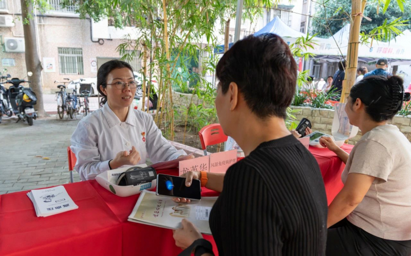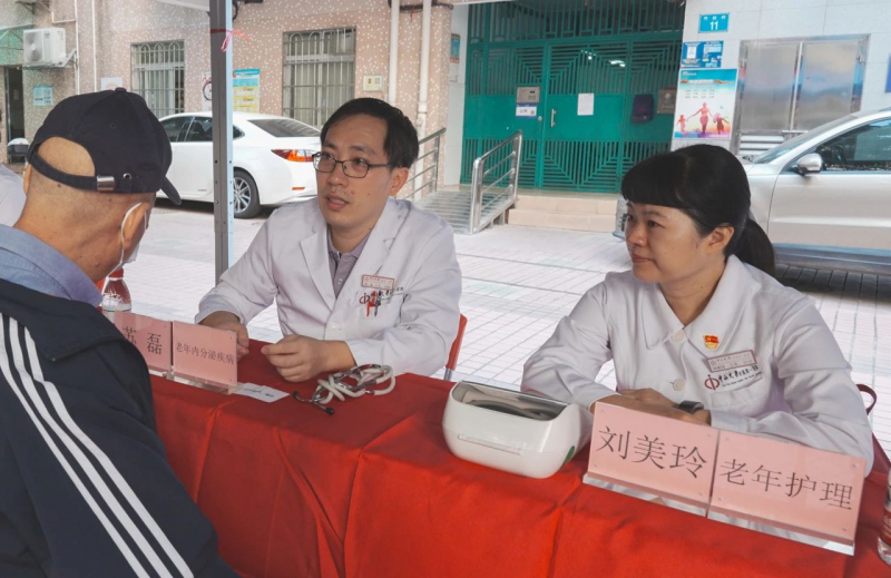 特需二科/老年医学科副主任苏磊(左一)及区护士长刘美玲提供老年慢病管理建议