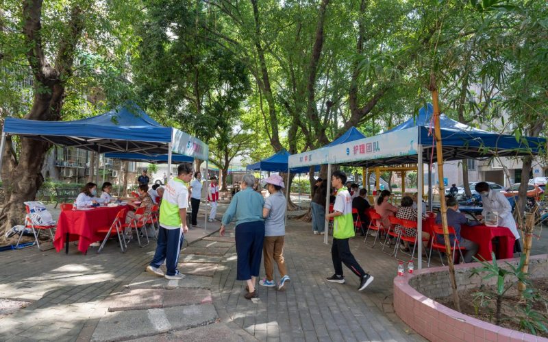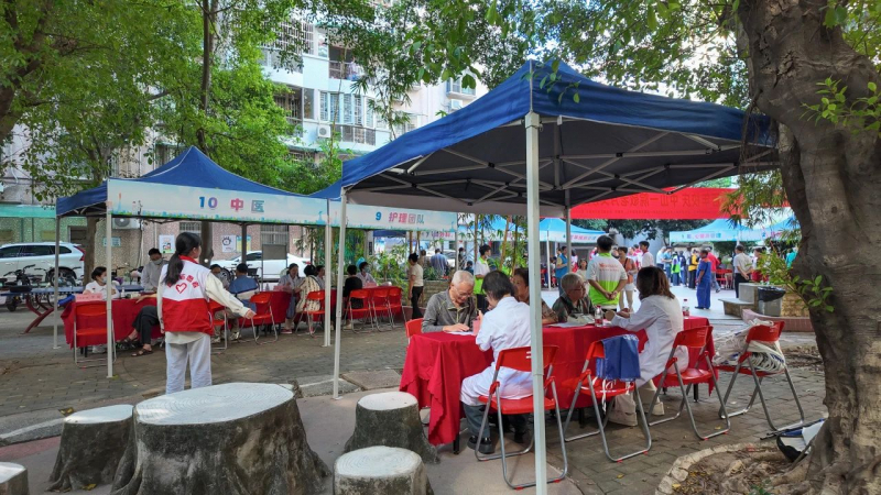 在这次义诊活动中,中山一院精心组织了一支近30名专家教授构成的医护团队。这些专家来自神经内科、老年医学科、心血管内科、内分泌科、耳鼻喉科、肾内科、脊柱外科、呼吸与危重症医学科、胸外科、风湿免疫科、眼科、口腔科、中医科以及妇科和健康管理中心等多个专业领域。活动当天,天气舒适凉爽,竹丝村小区内人头攒动,气氛热烈,不少老师拄着拐杖或坐着轮椅早早来到现场。医护专家们耐心为每一位前来咨询的教职工及其家属答疑解惑,提供了细致、直接的健康指导和诊疗建议。义诊活动受到离退休教职工以及社区居民的高度评价,对医护专家们竖起大拇指,赞不绝口称“中山一院的医护专家们牺牲休息时间来加班义诊,给我们解决大问题,很感谢你们”。